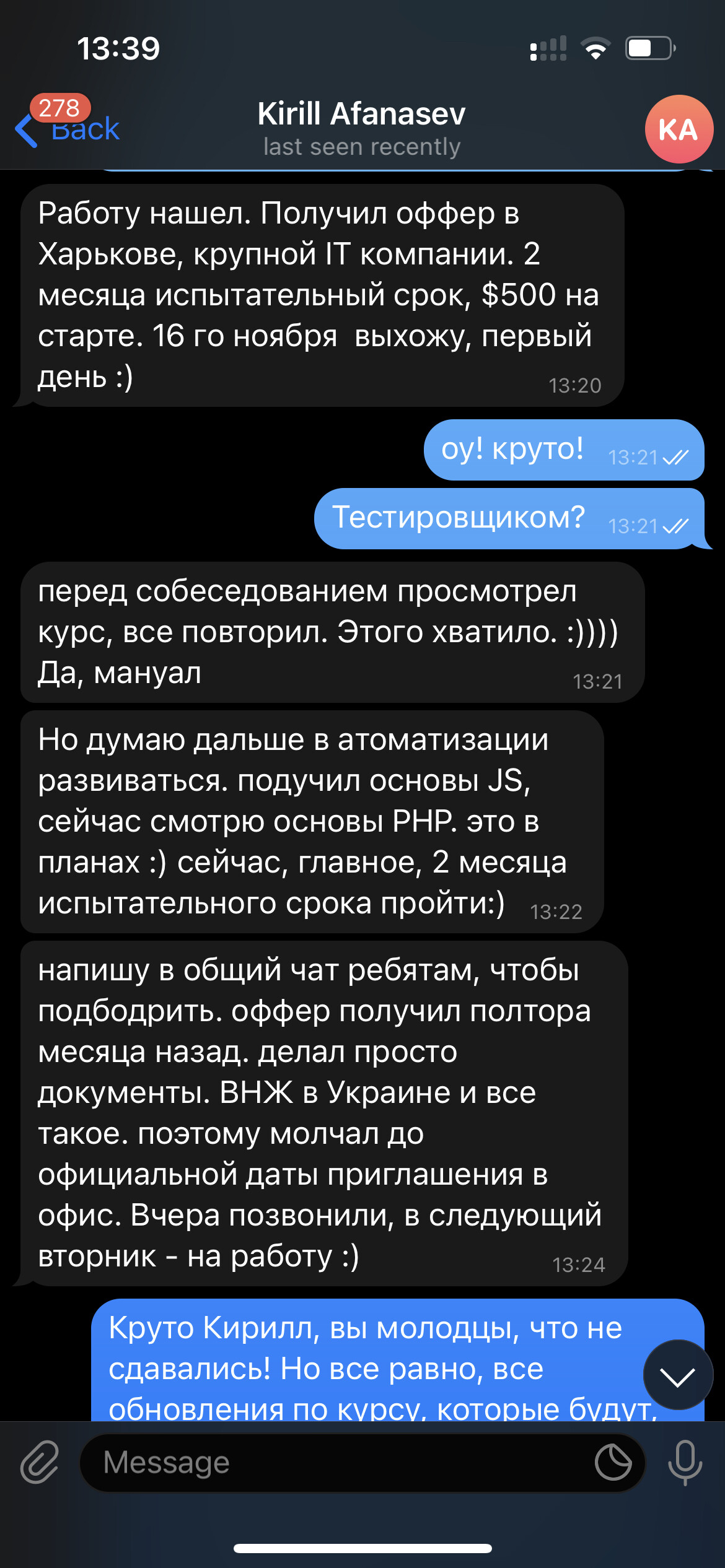 Александр - действующий QA Lead в международной компании